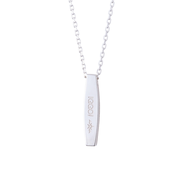 バータイプのトップの表面には、ドレッシングパフェのチームロゴから模様を取り込み3石のカラーストーンをセット。裏面にはシオンの口癖、「IGGO!」の刻印を施しました。