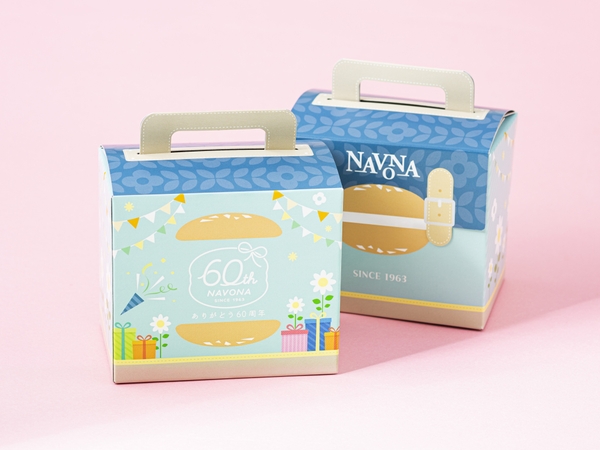 「愛媛ナボナマーマレードとバター」に合わせて、ナボナ発売60周年記念BOXを販売いたします。「愛媛ナボナマーマレードとバター」の他に、ナボナの定番の味わい「チーズクリーム」と「パイナップルクリーム」がセットになったナボナの歴史を感じることができる詰合せです。小さめのサイズでちょっとした贈り物にも最適です。
