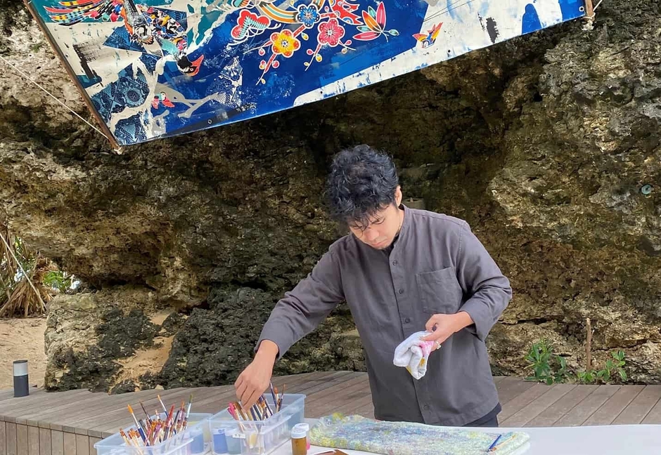 圧倒的な絶景とスケールを誇る海カフェ「星野リゾート バンタカフェ」では、2022年3月12日から5月15日に、春の海辺でアートと遊び、アートとくつろぐイベント「海辺のアートフェスティバル」を開催します。海に臨む入り江を囲うバンタカフェに、次世代の沖縄カルチャーを牽引するアーティストが集結し、彼らの作品で敷地内を彩る他、ライブペイントやワークショップで作品の魅力を体験できます。2021年に続いて行う本イベントでは、風になびくアートの下でくつろげる「てぃんかじテラス」や、制作風景が見学でき作品の購入もできる「あまくまギャラリー」も登場し、沖縄の最旬アートをより身近に感じることができます。