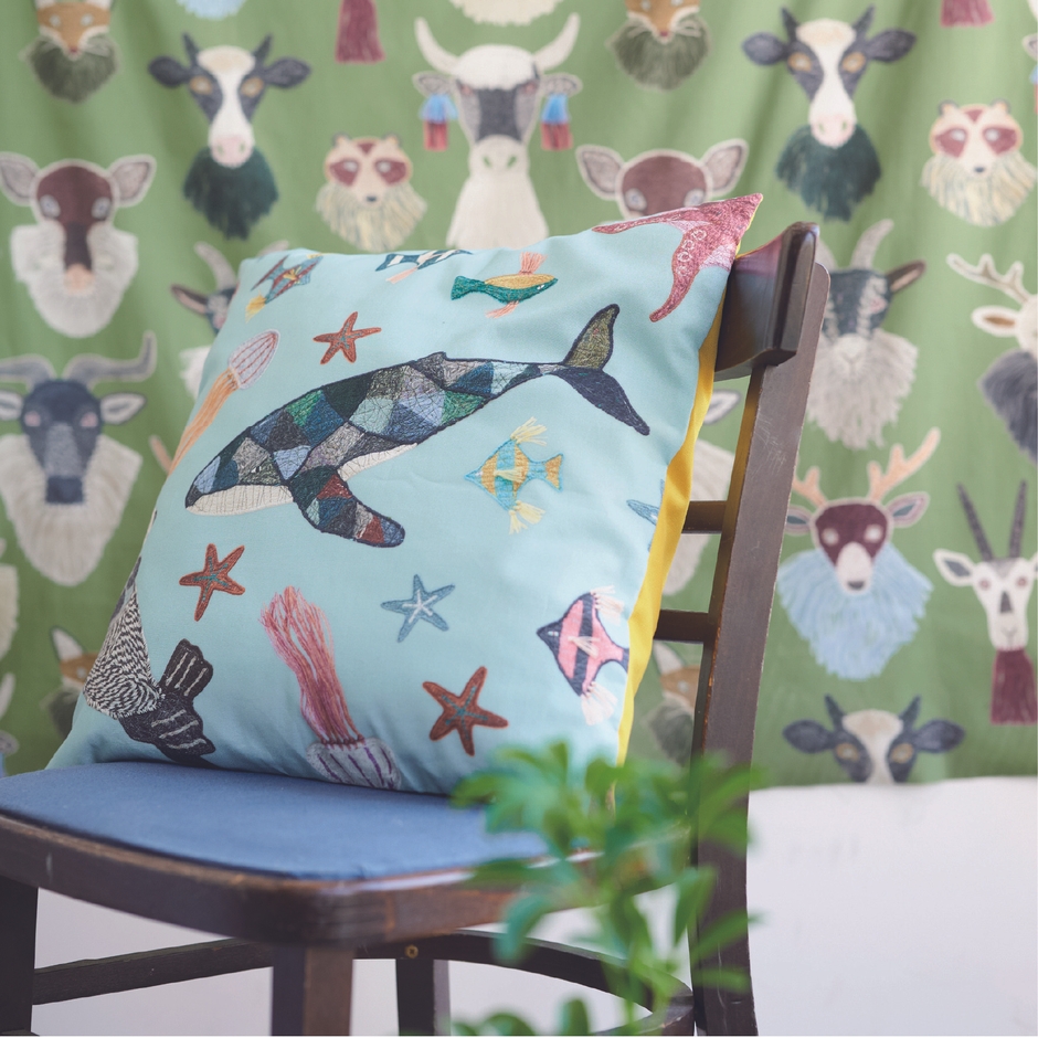 作家のラインナップの中でも珍しい海の生き物たち。海中を漂うようなランダムな配置が、自由で軽やかな印象を与えます。
