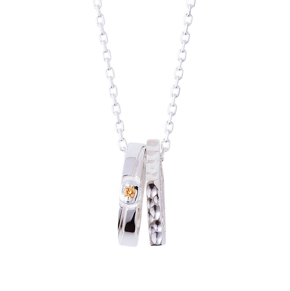 もう一方は青い監獄をイメージした五角形リングに槌目加工を施した二連ネックレスです。
