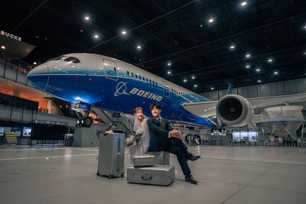 フライトパーク:ボーイング787初号機を独占できる贅沢な空間で、圧倒的なスケール感のある撮影を。航空史に残る伝説の機体と共に、おふたりだけの物語を紡ぎます。