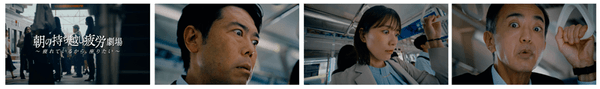 「朝の通勤電車で立っていて、目の前の人が降りると嬉しい」を映像化した本動画は、通勤電車の中で座席を求めて疲れを抱える人々の姿をリアルに描写しました。