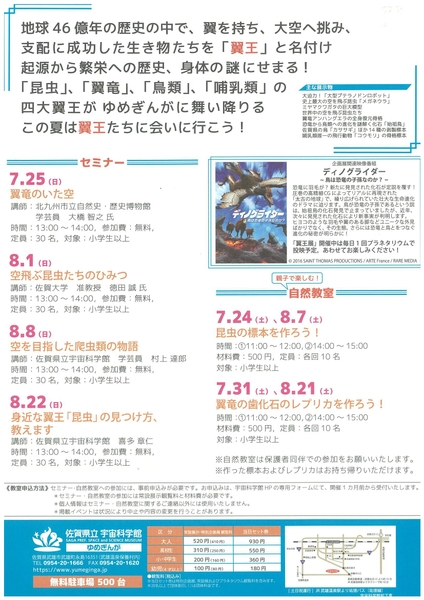 佐賀県立宇宙科学館《ゆめぎんが》では、夏の特別企画展として「翼王展」~大空を支配した生き物たち~を開催いたします。