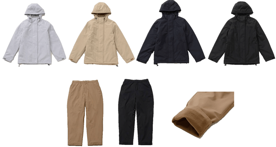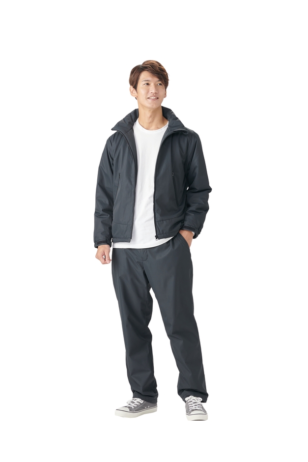風を通さない仕様であたたかな「防風」機能と、急な雨でも安心の「撥水」機能付き。さらにジャケットは、中綿で保温し熱を逃がさない「蓄熱」機能も施しており、軽やかな着心地と暖かさを両立しています。