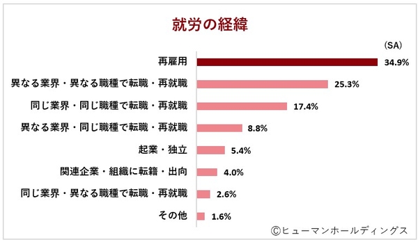 Q2. 現在の職業に就いた経緯は、1位「再雇用」、2位「異なる業界・異なる職種で転職・再就職」