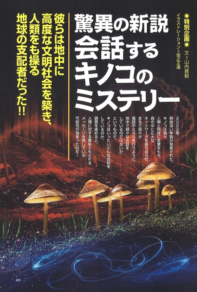 2022年、興味深い学説が発表された。キノコは、われわれ人類と同様に言葉をもち、森の中に広大なネットワークを張り巡らせ、まるでわれわれが電話やSNSを行うように、地中で様々な会話をしているのではないかというのだ。キノコは、いったい、どんな会話をしているのか。調査を進めると、人類に対する警告ともとれるメッセージを発していた可能性が高まった‼