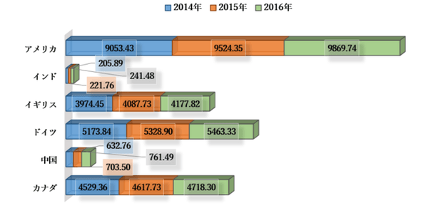 一人当たりの医療費、PPP(米ドル)– 2014-2016年