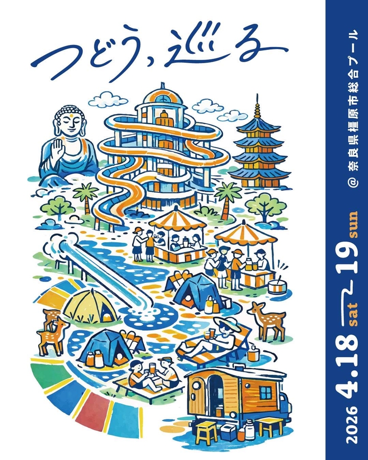 2026年4月18日(土)・19日(日)の2日間、橿原市総合プール(奈良県橿原市)の全エリアを活用させていただき、食・音楽・サウナ・マーケット・アクティビティが融合する体験型イベント『つどう、巡る 2026』を開催いたします。