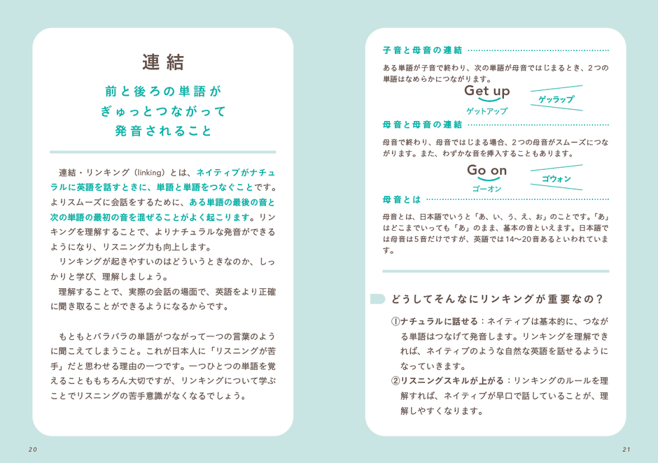 たとえば「Thank you.」は、英単語では「サンク」と「ユー」ですが、2つの単語がつながることで「サンキュー」になります。「Thank you」がつながって発音されることを、私たちはもう知っていますね。