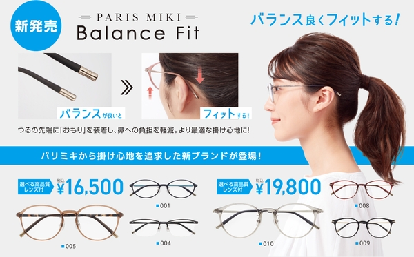 バランスフィットは、つるの両先端に「おもり」を装着することにより、レンズとの重心がつり合うよう設計された新しいフレームです。重心が耳の後ろに移動することでフレームのズレや疲れが軽減され、安定した快適な掛け心地を実現しました。薄型遠近両用や超薄型単焦点レンズも選べて、メガネ一式\16,500から、是非この機会にお近くのお店でお試しください!