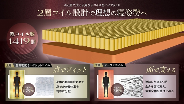 【GOKUMIN】ベストセラーがさらに進化!点と面の2種類のコイルで支えるハイブリッドマットレス誕生
