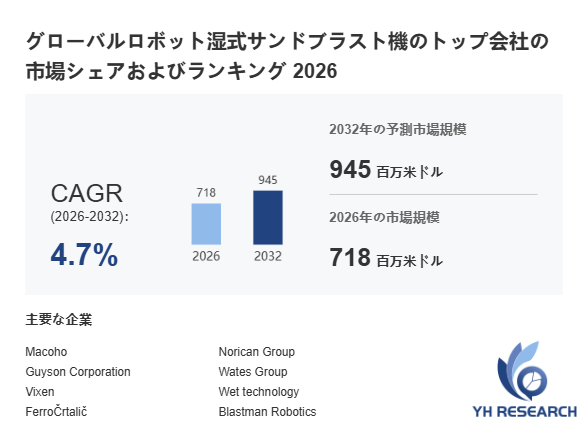 本記事は、YH Researchが発行したレポート「グローバルロボット湿式サンドブラスト機のトップ会社の市場シェアおよびランキング 2026」 を紹介しています。