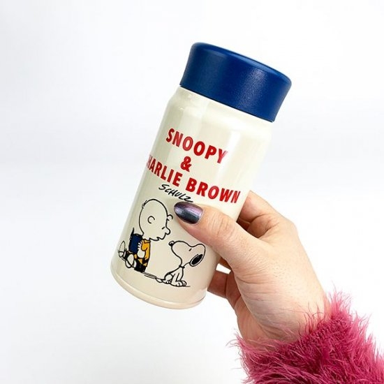 まずはレトロチックなスヌーピーから♡クリーム色のボトルが、なんともいい味を出していますね。ネイビーのフタもマッチしています。