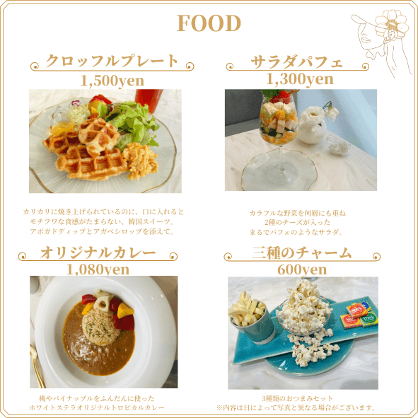 また、夜の時間帯と昼の時間帯によってメニューも変わりますのでご確認ください。