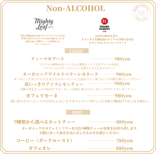 ※アルコールをご注文のお客様に限り、チャージ代300円を頂戴いたします。