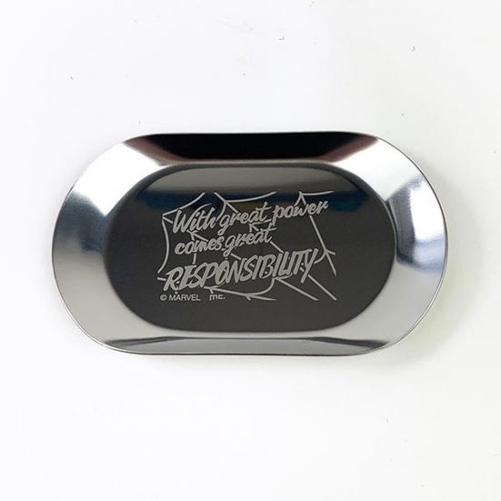 MARVELのステンレストレーです。手のひらサイズでコンパクト◎小物入れやお菓子入れなど沢山の使い道が沢山あります。プレゼントにもおすすめです♪