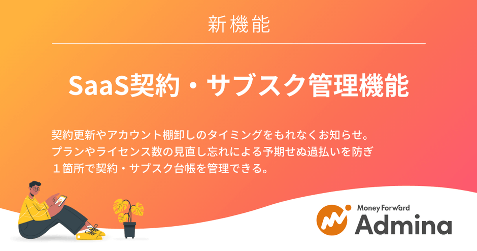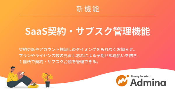 『マネーフォワード Admina』、新機能「SaaS契約・サブスク管理機能」を提供開始