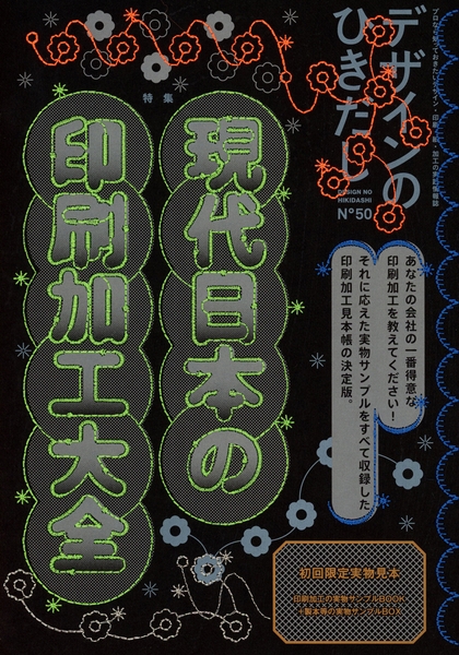そこで、「デザインのひきだし50号・超突破記念フェア」と銘打ち、印刷や紙加工からさらに発想を広げ、紙を糸で縫う“刺繍”という表現方法を使った50号表紙や、特集「現代日本の印刷加工大全」と連動した50号別冊サンプルBOOKに綴じ込まれた実物サンプルなどを展示します。