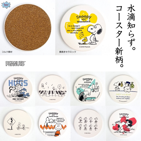 スヌーピーの吸水コースターに、いろいろなデザインが揃いました。どのデザインもとってもかわいいので、要チェックです。コースターとしてはもちろん、インテリアとして並べてもかわいいですよ♪