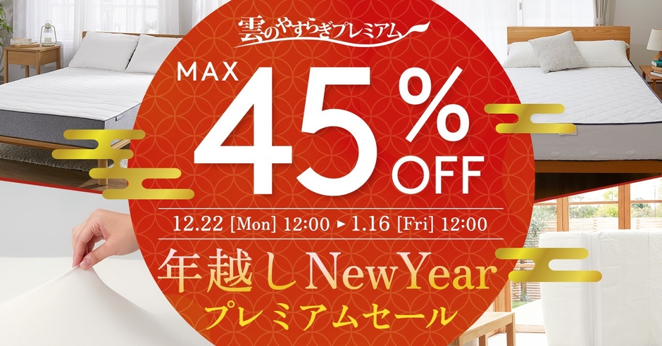 株式会社ロッピングライフ(本社:東京都港区)は、人気寝具ブランド「雲のやすらぎプレミアム」において、年末年始に合わせた限定キャンペーン 「年越し NewYearプレミアムセール」 を開催いたします。