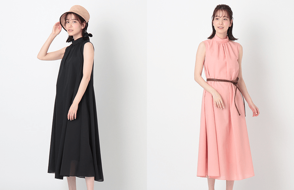 スタンドネックフレアワンピース ¥15,400(税込) 4色