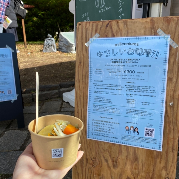 私たちは、「やさしいお味噌汁」をテーマに、フードロスや有機栽培の観点から丹後で作られたお野菜やお味噌などを中心に「お味噌汁」として提供させていただきました。