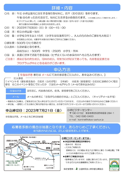 ※プログラムに際して、小峰公園~秋川間の野外活動を伴います(徒歩、片道15分程度)
