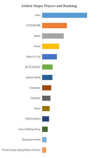 YHResearchのトップ企業研究センターによると、ゴム製 V ベルトの世界的な主要製造業者には、Gates、MITSUBOSHI、Bando、Fenner、Sanlux Co., Ltd、HUTCHINSON、Optibelt GmbH、Continental、Megadyne、Daycoなどが含まれている。2023年、世界のトップ5企業は売上の観点から約52.0%の市場シェアを持っていた。