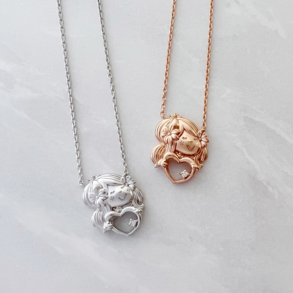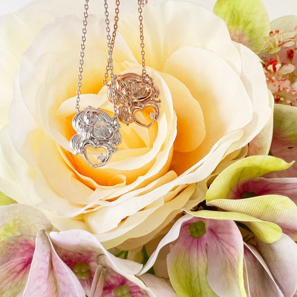 日本の工房で、熟練した職人さんが一つずつ丁寧に仕上げるジュエリーは、それぞれがうっとりするような美しさです。大人の方がさりげなく身につけることができる上品さと、水森亜土のイラストのキュートさをそのままに、シルバー925を使い、肌合いも、キャラクターも美しく輝くように心配りました。ネックレスでは定番のハートモチーフに、天然誕生石をあしらったデザインはシックに身につけていただけます。ご自身に、大切な方に。誕生石に願いをこめて、特別なギフトを贈りませんか。
