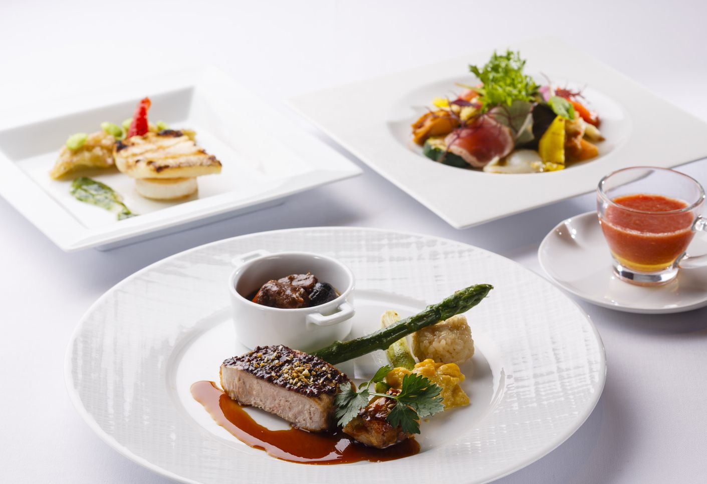 メインダイニングのレストラン「ブラン ルージュ」では、太陽の恵みを浴びた夏野菜や、鮎、鰻、大鮑など旬の食材で織りなすスペシャルランチ&ディナーコース「初夏の美食会」を3日間限定でご用意。総料理長 石原 雅弘による、そのときにしか味わえない美食の世界を存分にご堪能いただけます。