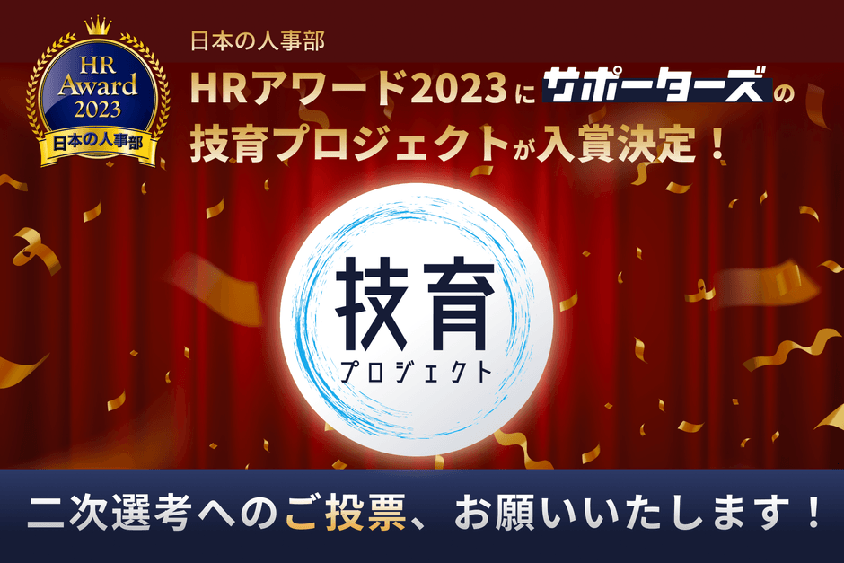 また、7月10日より、「HRアワード」公式サイトにて、最優秀賞・優秀賞候補を選出する投票受付が始まります。サポーターズが取り組む、学年不問のエンジニアキャリア育成プログラム『技育プロジェクト』を応援いただける方は、ぜひ以下より投票ください。