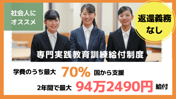 ”最大94万2490円”が支給される「専門実践教育訓練給付制度」。