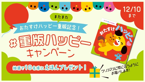 再び重版出来!大人気の絵本『おたすけハッピー』の重版出来を記念した 『#重版ハッピーキャンペーン』を12月10日まで実施中!