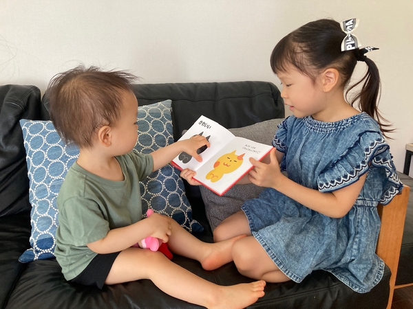 感情リテラシーを育むためには、まず感情にもいろんな種類があることや、それらに名前があることを知ってもらうことが重要です。『おたすけハッピー』は各ページに1つずつ登場する感情語(気持ちを表す言葉)とともに、お子さま自身が絵本に参加するインタラクション型の絵本です。