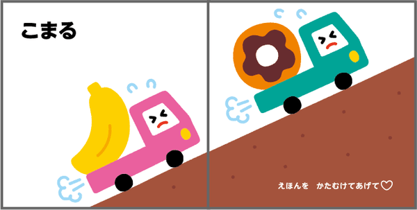 絵本を振ったり、傾けたり、時には息をふきかけたり。お子さまの様々なアクションで登場するキャラクターたちを“おたすけ”して、みんなをハッピーにしてあげましょう!「自分の働きかけで相手の感情が変化する」という子どもにとって大切な体験ができます。