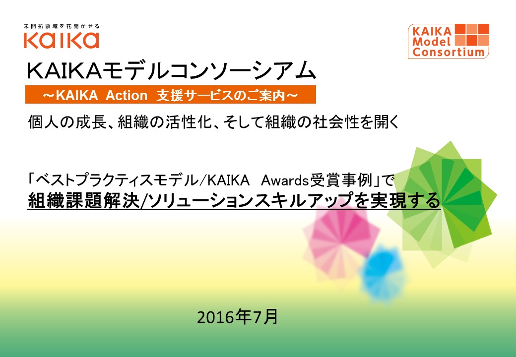(*) 一般社団法人日本能率協会が概念定義した「個の成長、組織の活性化、組織の社会性」を同時に実現するプロセス『KAIKA』(語源:開化・開花)を普及するプロジェクト(参考: http://kaikaproject.net/ )。