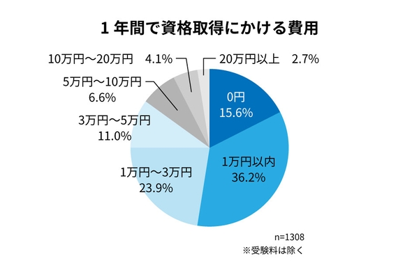 (2) 1年間で資格取得にかける費用は1万円以内が36.2% 中には20万円以上かける回答者も