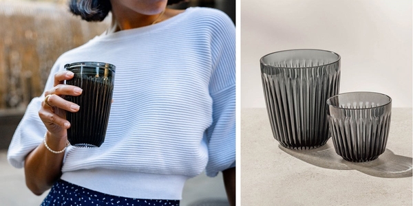 ハスキーリニューの最大の特徴はガラスのような外観。カラーは、無色の透明ガラスとは一線を画すスタイリッシュな黒系のスモークと、鮮やかさと温かみを併せ持つオレンジ系のアンバーの2色展開です。様々なテーブルセッティングやインテリアスタイルを引き立たせるスモーク、置いているだけでユニークな存在感を放つアンバー。