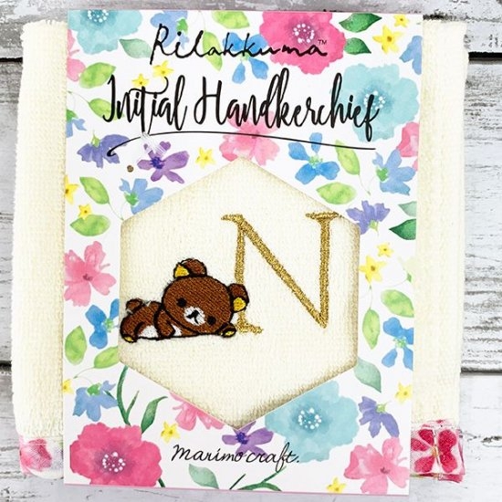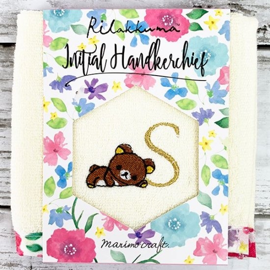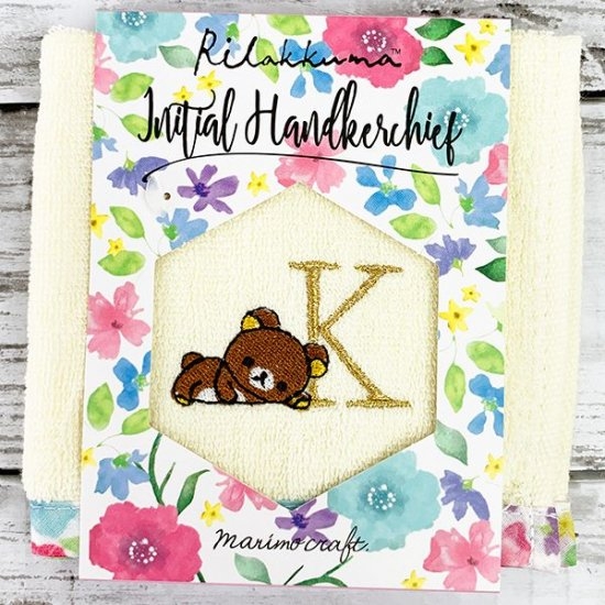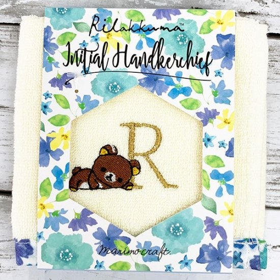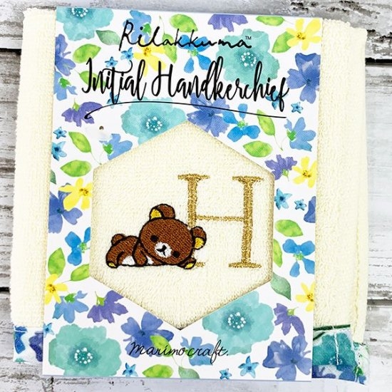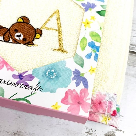 こちらがリラックマの花柄イニシャルハンドタオル。