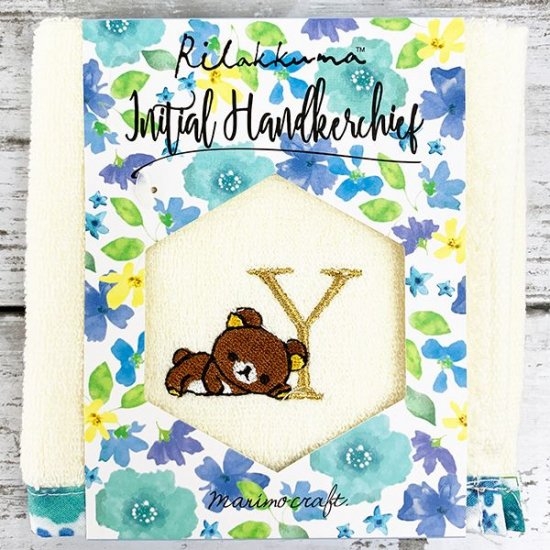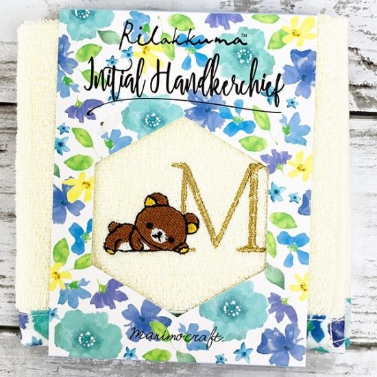 だらんとしたリラックマの刺繍がかわいい、花柄イニシャルハンドタオルのご紹介です。