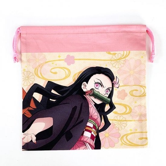 ピンクの禰豆子デザインの巾着袋です。凛とした表情の時はカッコいい禰豆子は、女の子にも人気ですよね。