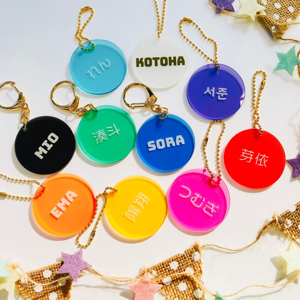 アクリルの透け感を活かした、お名前が入るオリジナルキーホルダーです。
