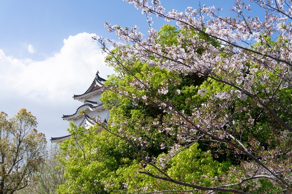 明石公園は明石駅のほど近くに位置し、明石城を中心とした歴史的な雰囲気が広がる公園です。約1400本の桜が咲き誇り、「さくら名所100選」にも選ばれています。桜並木や国指定の重要文化財である2基の櫓との見事なコラボレーションは、春の訪れを感じさせる絶景です。
