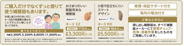 月額税込3,300円~ 定額にて補聴器を貸し出しいたします。使えるようになるか不安な方は、まずは補聴器を借りることから始めてみませんか?
