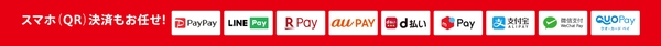 スマホアプリのQRコード決済をはじめ、便利なキャッシュレス決済もご利用可能です!※一部取り扱いのない店舗がございます。