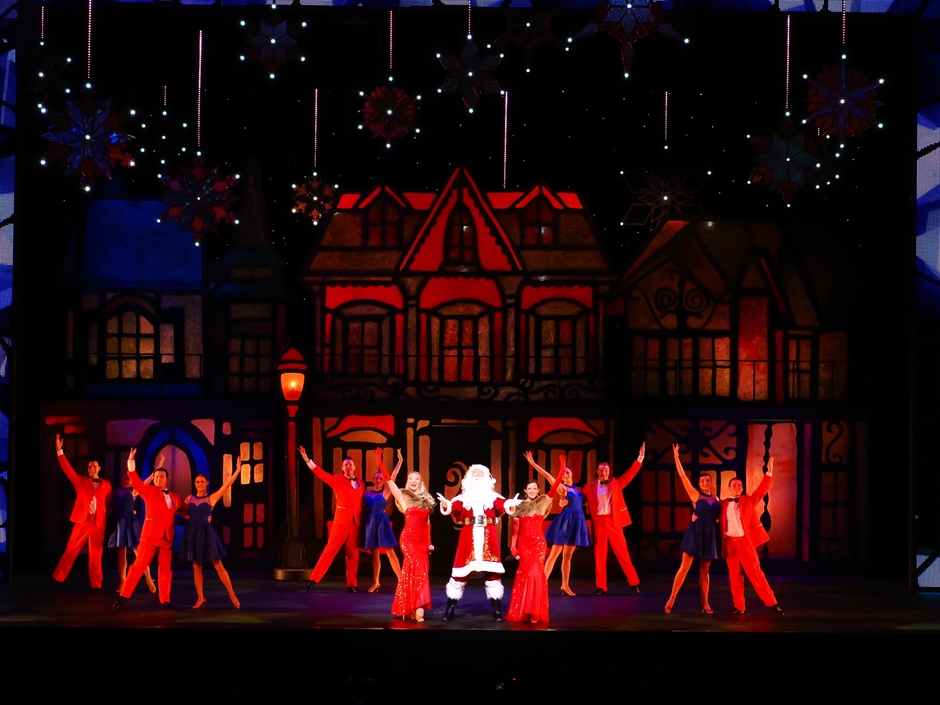 幕が開くと、結晶がキラキラ輝く雪の世界。真っ白な衣裳に身を包んだ6人のシンガーとダンサーたちが〈レット・イット・スノー〉〈ジングル・ベル〉〈赤鼻のトナカイ〉などを披露、一気にクリスマス気分に突入だ!ステージにそびえ立つ巨大なツリーの前での長〜いラインダンスは、ニューヨークのラジオシティで毎年上演される『スペクタキュラー・クリスマス』を彷彿させる。サンタクロースも登場し、パワフルに歌って踊って大忙し。そのうち場面はサンタのおもちゃ工場へ。おもちゃがどんどん作られ、プレゼントが準備される様子は、子供たちのクリスマスへの期待を一層盛り上げるに違いない。くまのぬいぐるみがイキイキとステップを踏む、そのキュートなこと!