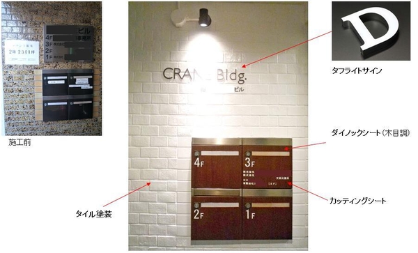 そこでこの物件では、ポストに階数表示とテナント名をカッティングシートで大き目に貼りました。