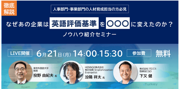 【6/21オンライン開催】徹底解説!なぜあの企業は英語評価基準を〇〇〇に変えたのか?ノウハウ紹介セミナー