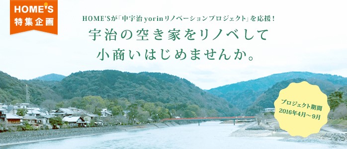 中宇治yorinリノベーションプロジェクト応援ページ「HOME'Sが中宇治yorinリノベーションプロジェクトを応援! 宇治の空き家をリノベして小商いはじめませんか。」